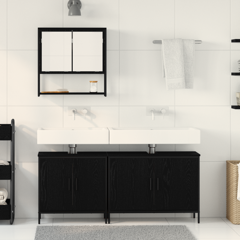 Начало Дом и градина Мебели Комплекти мебели Комплекти мебели за баня Комплект мебели за баня с рафт 3 pcs Черно Инженерно дърво