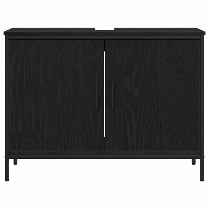 Комплект мебели за баня с рафт 4 pcs Черно Инженерно дърво