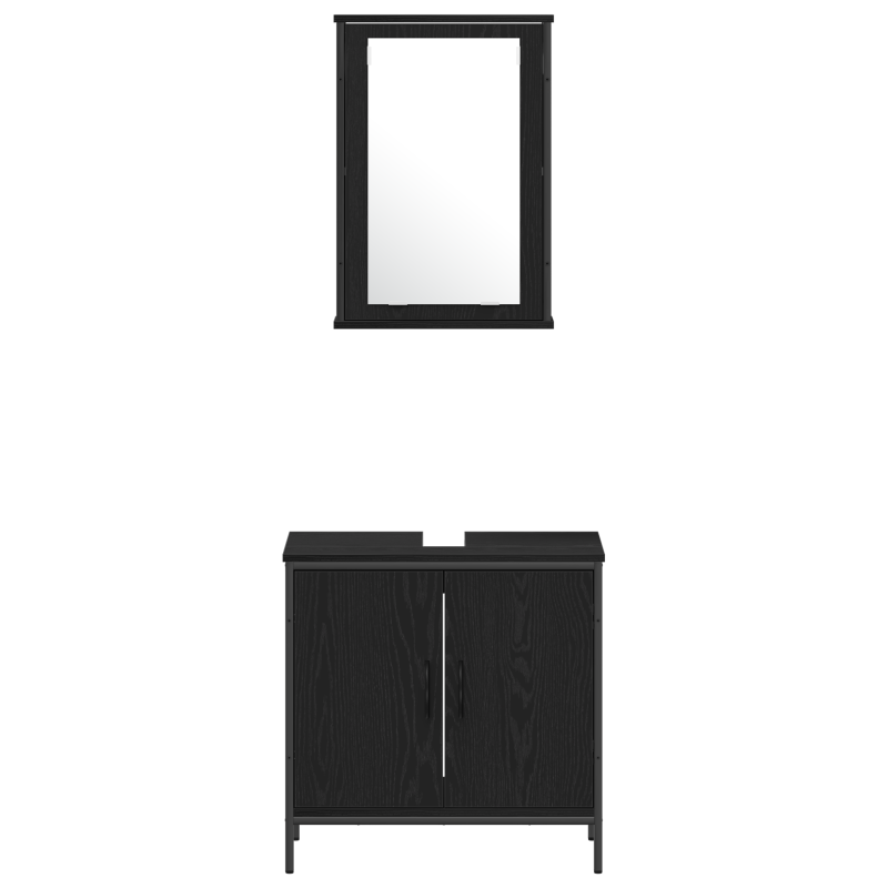 Комплект мебели за баня с рафт 4 pcs Черно Инженерно дърво