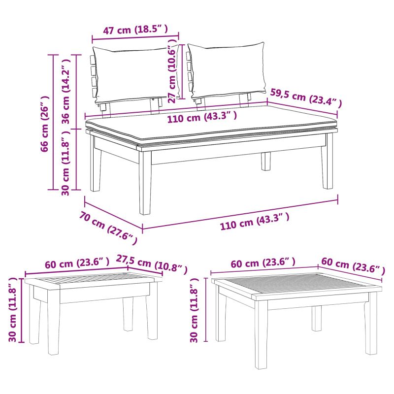 Комплектът Modern Garden Sofa Set е идеалното допълнение към вашата градина или тераса, съчетаващ функционалност с визуална привлекателност. С простата си форма и изчистен дизайн, този комплект предлага спокойна зона за сядане, която всеки би оценил. Независимо дали сте на лятно парти или просто се отпускате под слънчевите лъчи, той гарантира комфорт и стил за всеки. Тикова рамка добавя елегантност, а пухкавите възглавници ви канят да се насладите на слънцето.,Неговата гъвкавост го прави подходящ за много открити пространства, увеличавайки красотата на дома ви. Качествени материали Комплектът е направен от масивна тикова дървесина, която осигурява стабилна конструкция за външна употреба. Полиестерната тъкан на възглавниците предлага мекота и комфорт, позволявайки дълготрайна издръжливост дори на открито. Включени компоненти Комплектът включва пухкави възглавници, напълнени с пяна за максимален комфорт. Има здрава тикова повърхност и декоративни възглавници от полиестер, осигуряващи ергономична поддръжка за различни тела. Модерни функции Интегрирани ръчно регулируеми механизми, позволяващи персонализиране на сядането според вашите нужди, добавят индивидуален акцент. Многофункционална употреба Проектиран за градината и терасата, комплектът е идеален за слънчеви дни. Помага за релаксация и събирания с близки, спечелвайки си място в домакинствата. Грижа и поддръжка Лесен за поддръжка – просто избърсвайте с влажна кърпа. Препоръчваме да ползвате покривало при лошо време, за да удължите живота му и осигурите запазване на вида му.