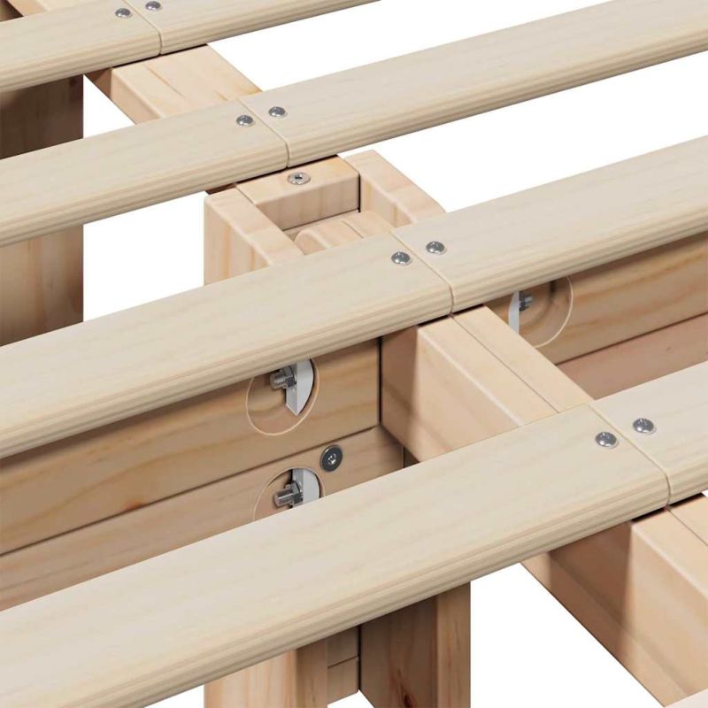 Тази леглова рамка е перфектна комбинация от форма и функция, проектирана да подобри визуалния и практичния аспект на всяка спалня. Съвременният стил с простота и функционалност излъчва елегантност благодарение на чистите линии и минималистичния си дизайн. Масивната борова дървесина носи естествена красота и издръжливост, създавайки топла и уютна атмосфера. Масивна борова дървесина: Легловата рамка е изработена от здрава масивна борова дървесина с топла текстура и елегантен вид. Този материал предоставя дълготрайност и комфорт за спокоен сън през годините. Многофункционален дизайн: Класическият стил на рамката лесно се вписва в различни интериори, от минималистични до сложни декори. Привлекателният й вид остава актуален и адаптивен към различни тенденции. Функционалност: Рамката е здрава и предлага стабилна повърхност за сън. Солидната изработка гарантира качество, което издържа на ежедневна употреба. Само за вътрешна употреба: Проектирана за уютни спални, рамката идеално вписва в ограничени пространства, максимизирайки комфорта и стила. Лесна поддръжка: Поддържането е лесно - просто избърсвайте с влажна кърпа. По този начин естественият вид на дървото остава непокътнат с минимални усилия.