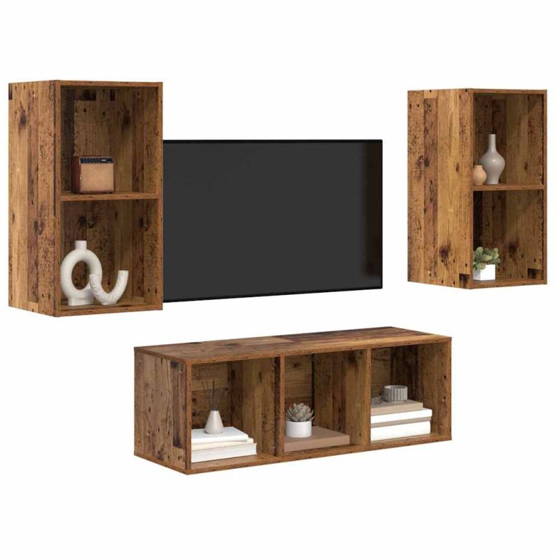 Комплект ТВ шкаф 3 pcs Старо дърво Инженерно дърво