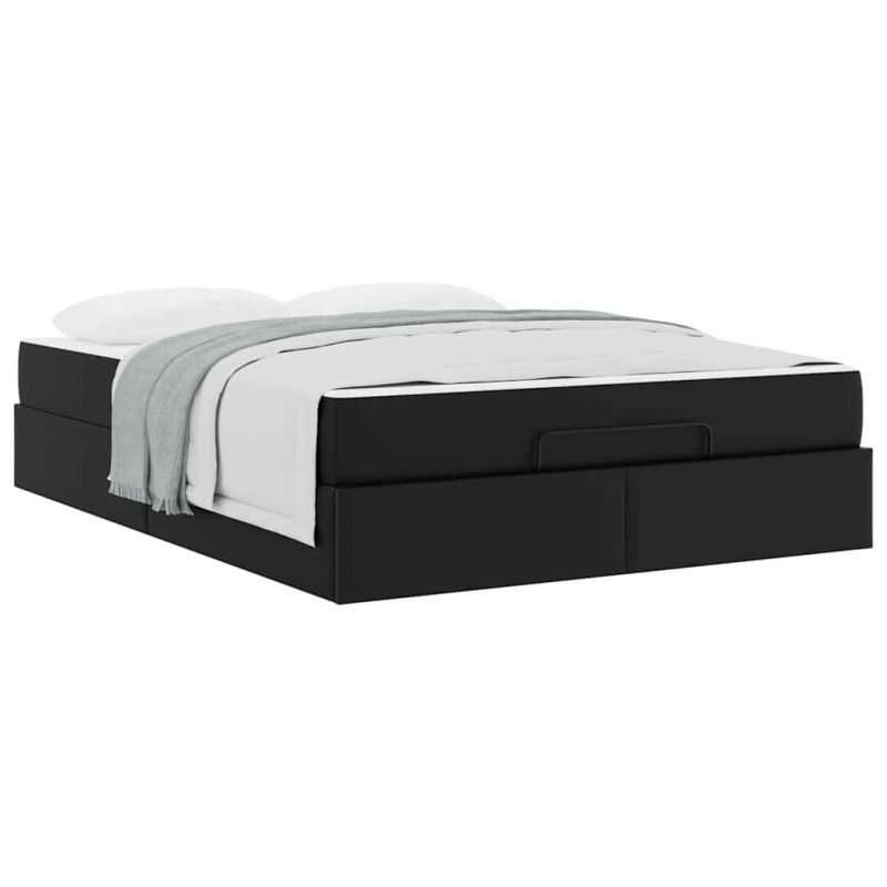 Рамка за легло с матрак Черно 140 x 200 cm Изкуствена кожа