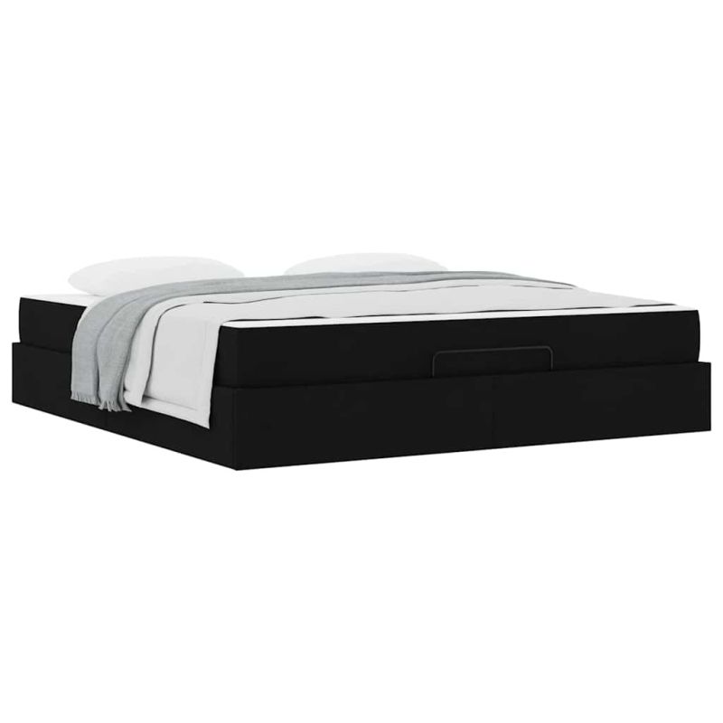 Рамка за легло със съхранение Черно 180 x 200 cm текстил