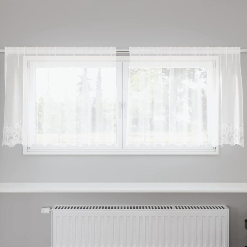 Перде от дантела С завеси Флорален Бяло 120 x 200 cm Полиестер