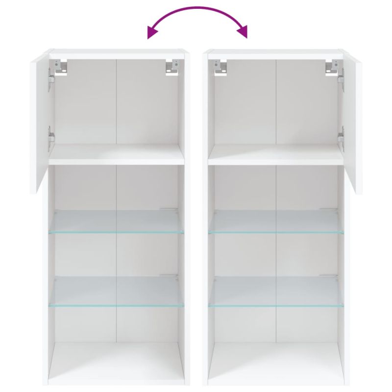 С модерен и същевременно практичен дизайн този ТВ шкаф с LED осветление ще се превърне във фокусна точка на вашата стая. Издържлив материал: Инженерната дървесина е с изключително качество с гладка повърхност и също така се отличава със здравина, стабилност и устойчивост на влага. Изработена от инженерно дърво, тази ТВ поставка е здрава и издръжлива.Достатъчно място за съхранение: ТВ модулът предлага достатъчно място за съхранение, за да държите вашите DVD плейъри, приемници, дискове и други дребни предмети добре организирани и достъпни.RGB LED осветление: Тази мебел за мултимедийни устройства разполага с RGB LED осветление, което има различни менюта за промяна на цвета на светлините и позволяват на цвета да се регулира автоматично.Дизайн със стенен монтаж: Този шкаф за мултимедийни устройства може да се монтира на стена за допълнително място за съхранение. По този начин можете да увеличите максимално пространството на пода и да поддържате чистота. Добре е да се знае:Винтовете и дюбелите за вътрешната стена не са включени. Съветваме ви да намерите и използвате винтове и дюбели, подходящи специално за вашите стени. Ако не сте сигурни, можете да се консултирате с професионалист. Моля, прочетете и следвайте всяка стъпка от инструкциите.Продуктът има USB конектор, който изисква сертифициран 5V USB захранващ източник (не е включен). Не използвайте този артикул, ако някой от компонентите е счупен, скъсан или липсва. Този продукт се захранва с DC 5V, но сертифицираният 5V USB източник на захранване не е включен в комплекта. По-високото напрежение може да доведе до прегряване на устройството и да доведе до повреда на устройството и потенциален риск от прегряване и пожар.