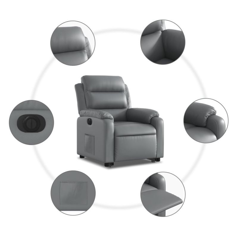 Електрически изправящ реклайнер стол, сив, изкуствена кожа