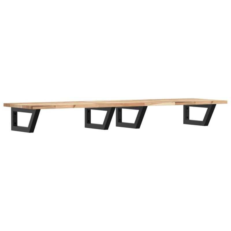 Стенният рафт за мивка се прикрепя сигурно към стената, осигурявайки елегантно и спестяващо място решение за вашата баня. Здрав и дълготраен: Този рафт за мивка е комбиниран със стоманена конструкция и плот от масивна акациева дървесина, което го прави здрав, стабилен и дълготраен.Спестяване на място: Плаващият рафт за мивка има достатъчно място за съхранение на кремове и дребни предмети. Благодарение на трапецовидната форма можете да закачите кърпи или други неща на опората, за да спестите място.Лесен за използване: Плотът се доставя без дупки, за да позволи на мивката да се монтира отляво, отдясно или в центъра, в зависимост от изискванията на вашето помещение. Благодарение на предварително пробитите отвори в държача, той може лесно да се сглоби с плота и да се монтира на стената.Широки приложения: Благодарение на модерния си дизайн, осигурява допълнително пространство за различни видове бани. Добре е да се знае:Винтовете не са включени, можете да закупите винтовете отделно въз основа на информацията, предоставена по-долу.Прикрепване към стена: 2 бр дюбели M8 на скобаДървен плот: 2 бр M5x18 винта (T=2) или 2 бр M5x20 винта (T=2,5/4 см) на скоба