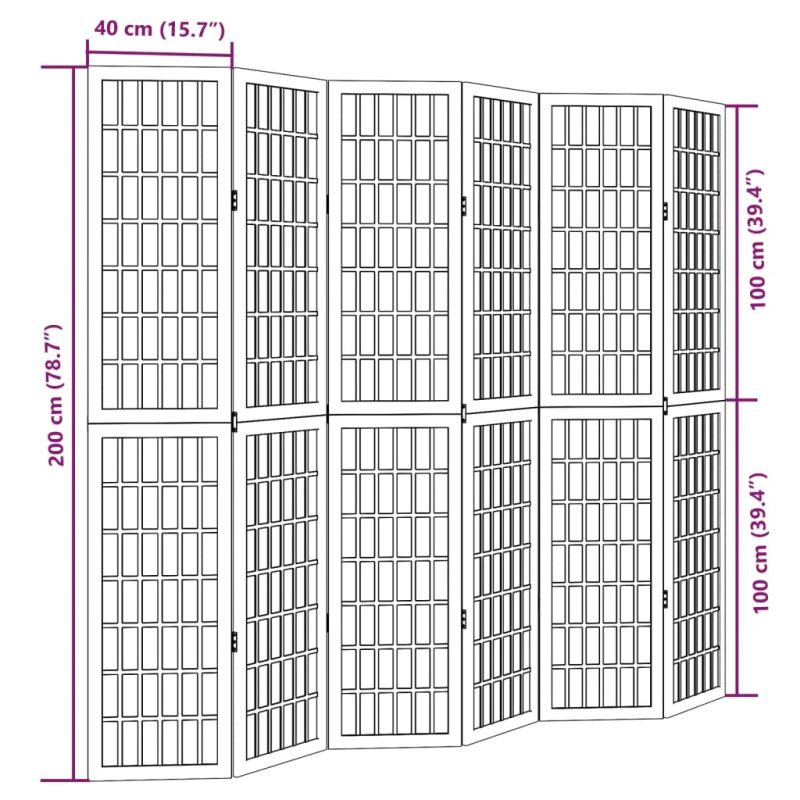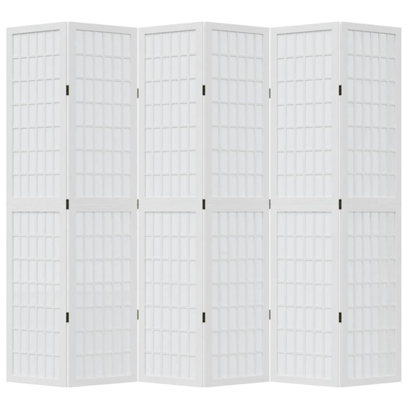 Разделител за стая, 6 панела, бял, дърво пауловния масив