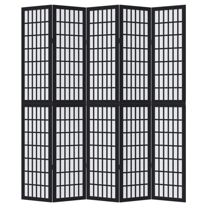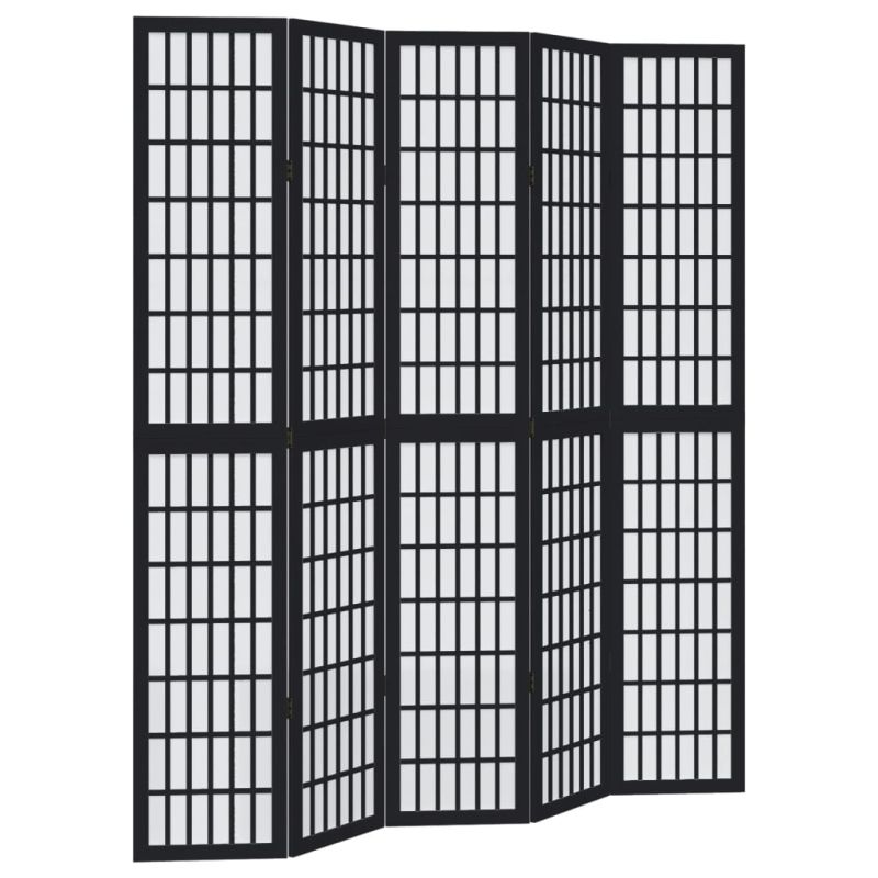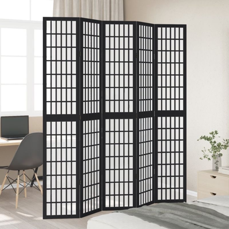 Разделител за стая, 5 панела, черен, дърво пауловния масив