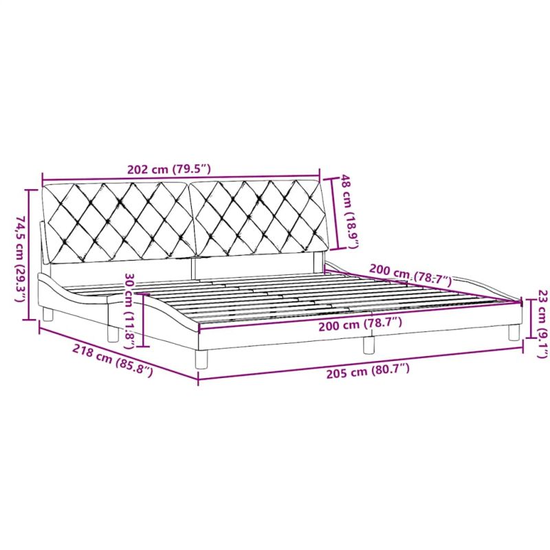Осигурете си по-добър спокоен нощен сън с тази рамка за легло! То представлява приветливо допълнение към всяка спалня. Мек и издръжлив материал: Полиестерната тъкан предлага комбинация от мекота, дишане и издръжливост, гарантирайки ви да изпитате максимален комфорт и уют.Ламели за оптимална опора: Тази рамка за легло е пълна с ламели, за да предложи нужните опора и дишане за вашия матрак.Гъвкава табла: Тази рамка за легло се предлага с табла, която осигурява отлична опора за гърба, когато седите в леглото, за да четете или гледате телевизия, като същевременно служи и като декоративен елемент.Удобен дизайн: Възглавницата за табла за глава има цип за лесен монтаж, а закопчалките с кукички на гърба могат да се използват за закрепване на LED светлините.Вълнообразен страничен дизайн: Вълнообразният дизайн на рамката на леглото е стилен и изискан, добавя модерен и елегантен щрих към вашия декор, превръщайки го във фокусна точка на вашата спалня. Добре е да се знае:Към това легло не е включен матрак. Ние предлагаме разнообразна селекция от матраци. Можете да проверите нашия магазин за подходящ матрак.