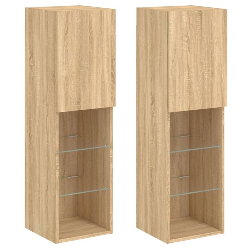 ТВ шкафове с LED осветление 2 бр дъб сонома 30,5x30x102 см
