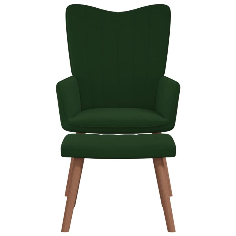 Стол за релакс с табуретка, тъмнозелен, кадифе