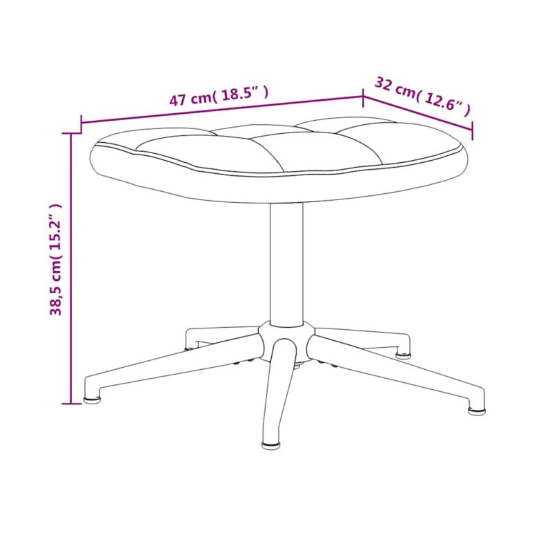 Този релаксиращ стол с табуретка има шикозен и елегантен дизайн и добавя модерна нотка към вашия декор. Този фотьойл е естетически издържан и се отличава с наличието на блокчета. Благодарение на плътно подплатената пяна, тапицирана с мек на допир велур, можете да се насладите на оптимален комфорт по време на седене. Това кресло за релакс може да се върти на 360 градуса за голяма гъвкавост. Освен това, поддържан от стоманена рамка и кръстосани крака, релакс столът с табуретка е стабилен и издръжлив. Максимално 110 кг на седалка. Съобразете се с риска от открит огън и други източници на силна топлина в близост до продукта.