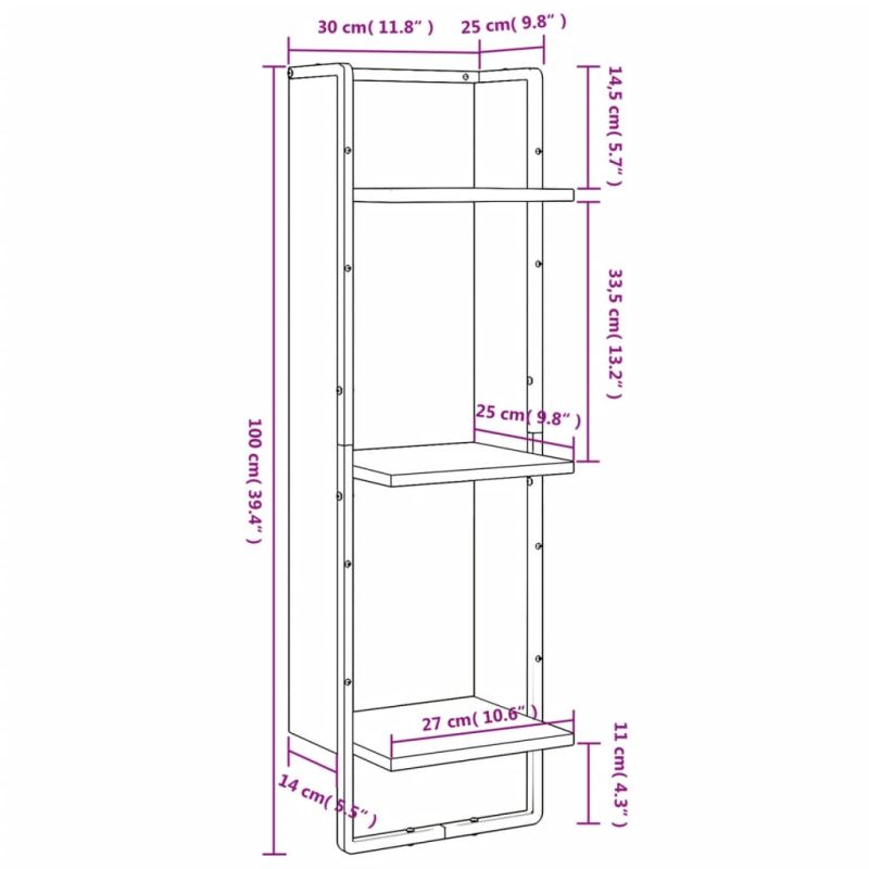 Стенен рафт на 3 нива сонома дъб 30x25x100 см инженерно дърво