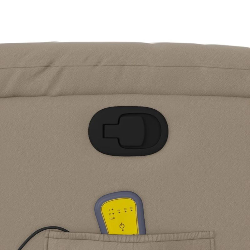 Облегнете се и се отпуснете в този изключително комфортен изправящ масажен и наклоняем стол! Функция за повдигане: Този стол реклайнер е оборудван с електрически двигател с функция за повдигане. Благодарение на функцията, която избутва целия стол нагоре, можете лесно да стоите, без да натоварвате гърба и коленете си с просто натискане на бутона.Функция за ръчно накланяне: Този накланящ се стол има дръжка от дясната страна. Можете ръчно да настроите поставката за крака и облегалката до произволна позиция според вашето удобство с просто издърпване на дръжката. Тази функция позволява максимален наклон от 135 градуса. Освен това облегалката може бързо да се върне на първоначалното си място с лесно издърпване на дръжката.Функция за вибрация: Представените 6 масажни точки ви позволяват да изпитате по-целенасочен масаж. Освен това включеното ръчно управление ви позволява да избирате различни програми за масаж. Функцията за масаж се захранва от USB конектор, който изисква сертифициран 5V USB захранващ източник (не е включен).Удобно седене: Дебело подплатената седалка, облегалката и широките подлакътници, покрити с изкуствена кожа, осигуряват уютно и топло усещане, което ви кара да се чувствате като в прегръдка, докато седите. Изкуствената кожа е много издръжлив материал. Устойчива е на петна, което я прави лесна за почистване с влажна кърпа. Гладката повърхност също така придава луксозен вид и красотата на истинската кожа.Удобен страничен джоб: Този фотьойл има страничен джоб за вашето дистанционно управление или за поддържане на вашите основни вещи леснодостъпни.Здрава и стабилна рамка: Рамката, изработена от дърво и метал, осигурява здрава структура и стабилност. Този накланящ се фотьойл е удобен и издръжлив. Максимално 110 кг на седалка.Този уред може да се използва от деца на възраст от 8 години и повече и от лица с намалени физически, сетивни или умствени способности или с липса на опит и познания, ако са получили надзор или инструкции за безопасно използване на уреда и разбират свързаните с него опасности. Децата не трябва да си играят с уреда. Децата не трябва да почистват и да извършват потребителска поддръжка без надзор.