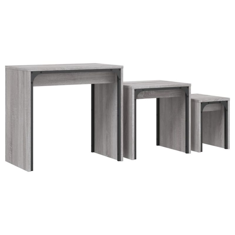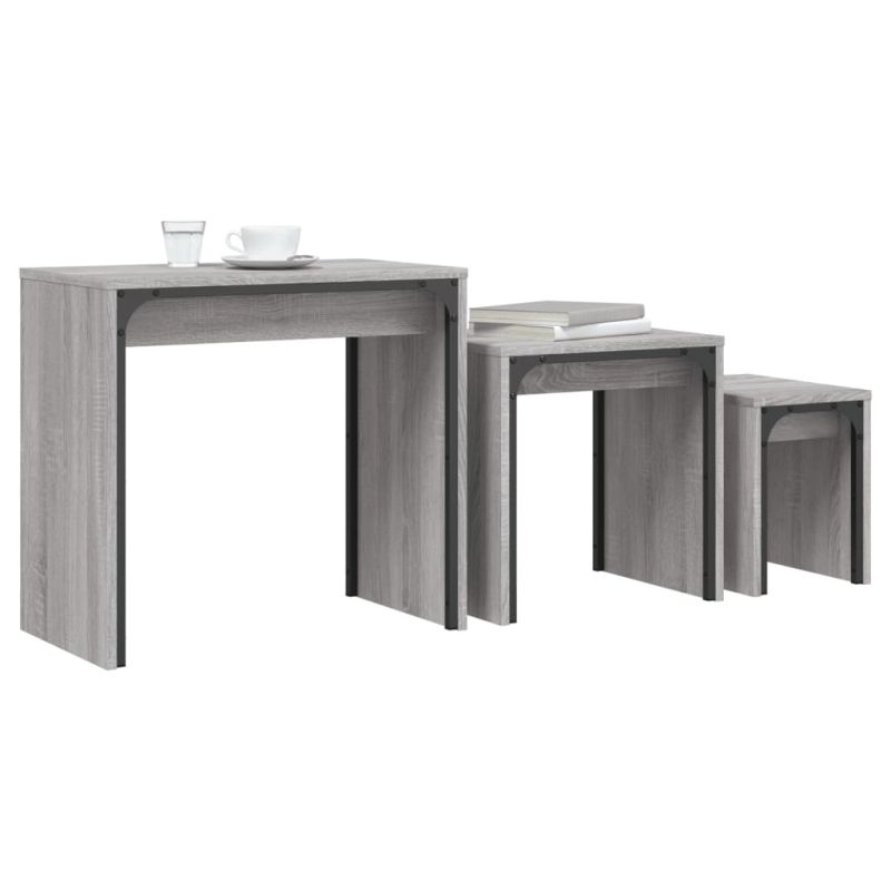 Стифиращи кафе маси, 3 бр, сив сонома, инженерно дърво