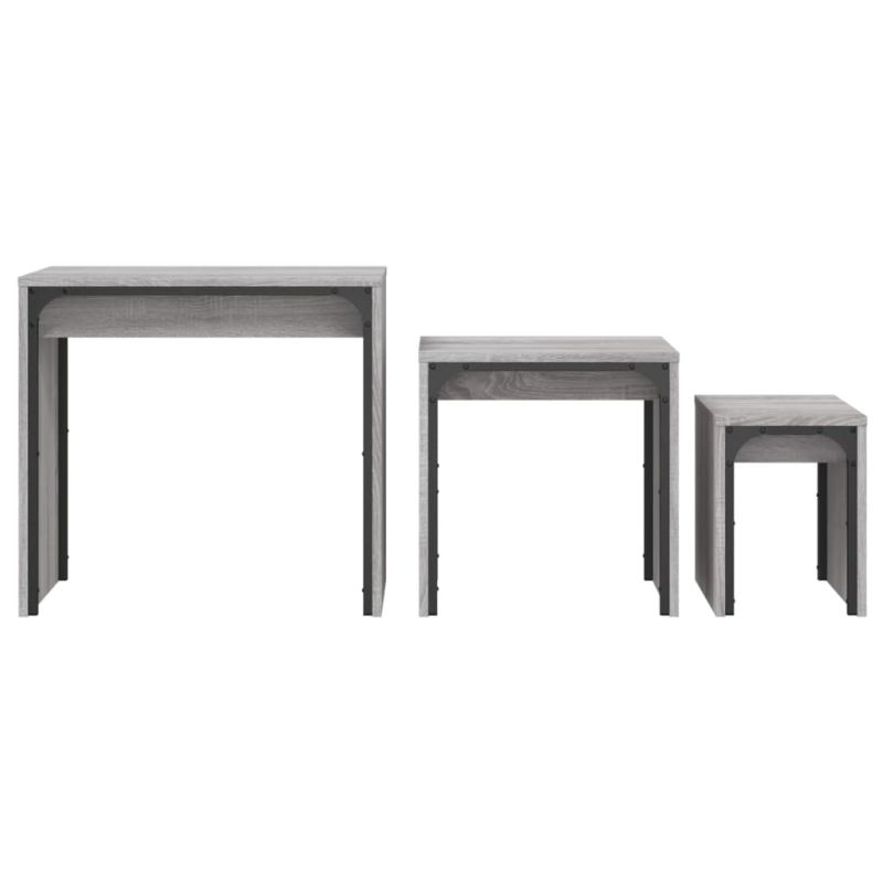 Тези стифиращи маси за кафе от 3 части са перфектната алтернатива за малки апартаменти или всяко жилище с ограничено пространство. Съвременният ѝ дизайн прави тази масичка за кафе шикозно допълнение към вашата всекидневна, спалня или офис. Издържлив материал: Инженерната дървесина е с изключително качество с гладка повърхност и също така се отличава със здравина, стабилност и устойчивост на влага. Изработени от инженерно дърво, тези стифиращи маси са лесни за почистване.Стифиращ дизайн: Стифиращите маси за кафе в комплект имат различни размери, за да отговорят на разнообразните ви изисквания. По-малките масички може да се поставят в по-голямата маса, ако имате нужда от повече пространство. И можете да ги разположите отделно за максимално пространство на плота.Здрав плот: Здравият плот на страничните стифиращи маси е идеален за поставяне на вашите напитки или всякакви други нужди, от които се нуждаете.Универсална функция: Стифиращите странични маси са многофункционални! Всяка от тях може да се използва като нощно шкафче в спалнята, помощна масичка или масичка до дивана в хола и офиса.Метална рамка: Металната рамка добавя индустриален стил към вашия интериор, като същевременно гарантира издръжливост и стабилност.