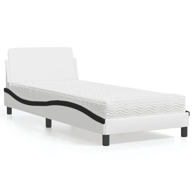 Легло с матрак Dover, бяло и черно, 80x200 см, изкуствена кожа
