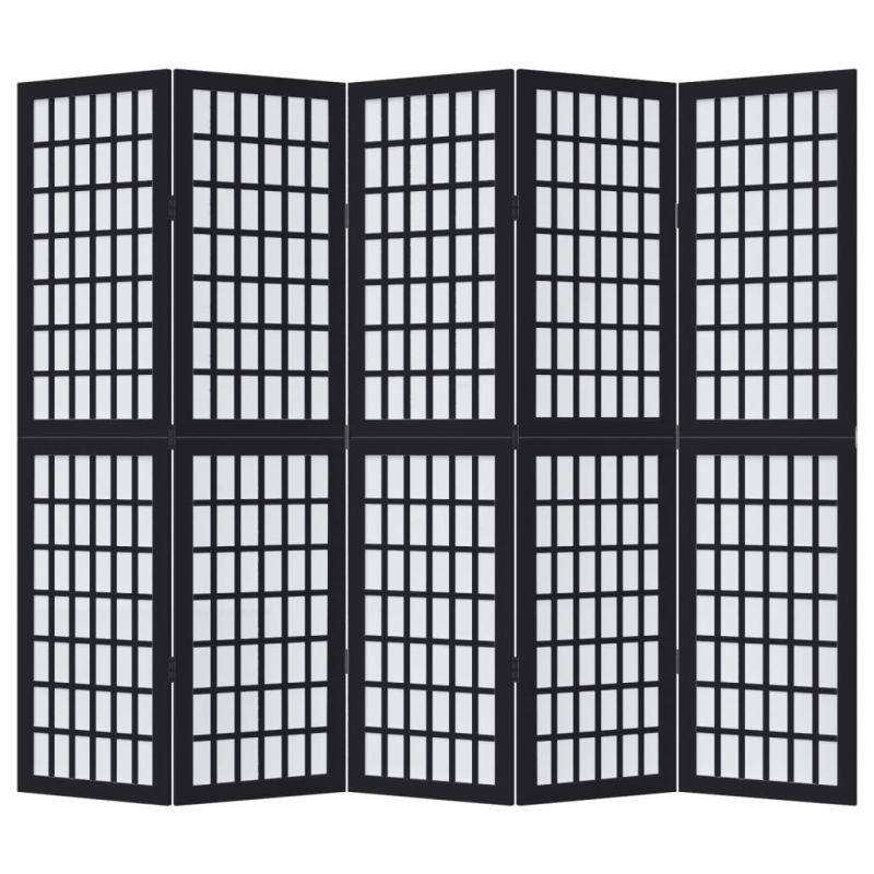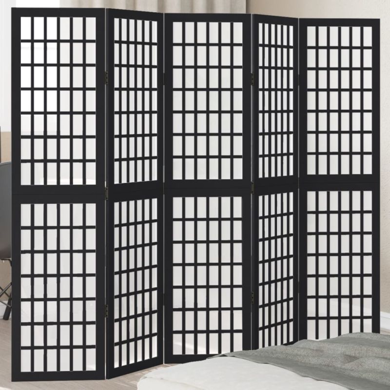 Разделител за стая, 5 панела, черен, дърво пауловния масив