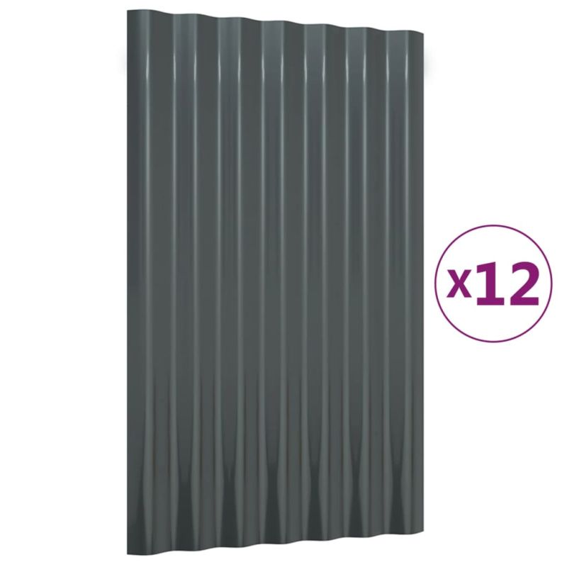 Панели покрив 12 бр поцинкована стомана антрацит 60x36 см