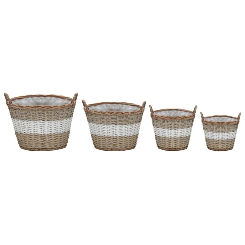 Нашето повдигнато легло от ракита е перфектен избор за отглеждане на зеленчуци, билки и цветя на балкона, в градината, вътрешния двор и др. Кошницата за растения на открито е изработена от ракита с РЕ вложка и излъчва традиционен рустик чар. Лесно можете да носите тези върбови саксии за дръжките. Доставката включва 4 ратанови плантера с различни размери. Важна забележка: Тези артикули са ръчно изработени, което прави всеки от тях уникален; доставката е на случаен принцип.