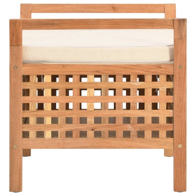 Нашата пейка за съхранение с възглавница е с атрактивен естествен стил и ще бъде акцента на вашия коридор, спалня или баня. Изработена от масивна орехова дървесина и шперплат, тази табуретка е здрава и издръжлива. Тя разполага с просторно отделение за съхранение, което ще бъде идеално за съхраняване на кърпи, играчки и други аксесоари. Благодарение на решетъчния дизайн, предметите, които поставяте вътре, ще бъдат добре вентилирани. Плътно подплатената възглавница прави седалката изключително удобна. Калъфът на възглавницата с цип може лесно да се свали и изпере.