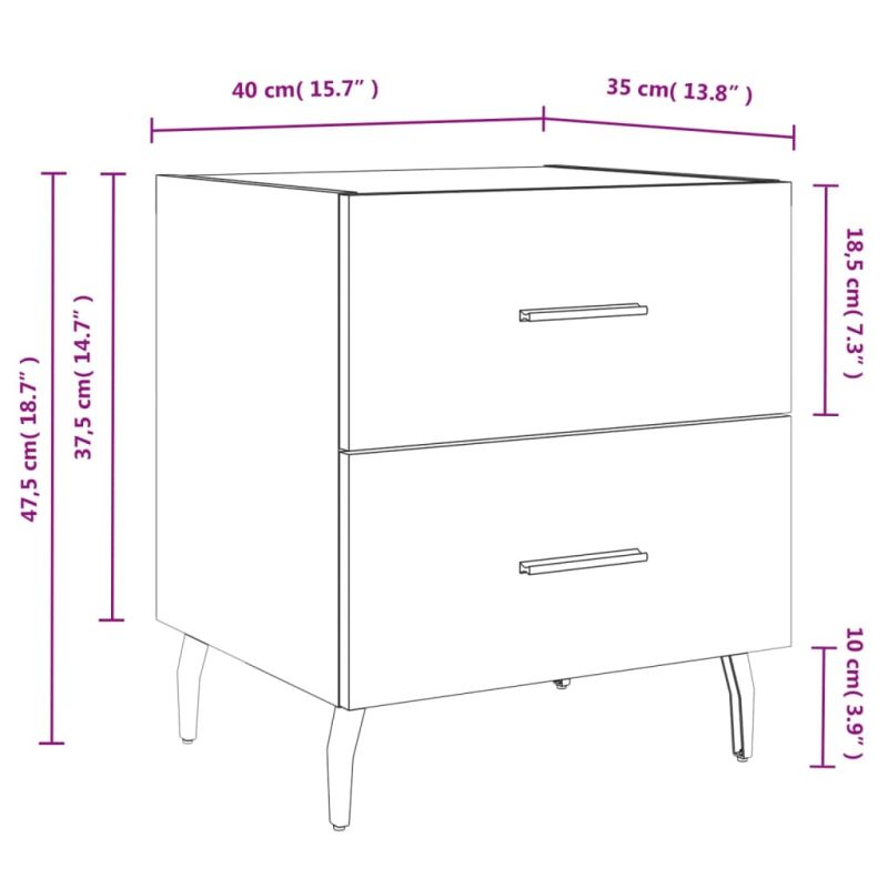Внесете полъх на модерен чар във вашия интериор с това нощно шкафче! Издържлив материал: Инженерната дървесина е с изключително качество с гладка повърхност и също така се отличава със здравина, стабилност и устойчивост на влага. Просторно място за съхранение: Нощното шкафче има чекмеджета, осигуряващи просторно място за съхранение, за да държите вашите книги, мултимедийни уреди и други предмети подръка.Декоративна функция: Можете също така да поставите любимите си снимки, декорации или цветя върху страничния шкаф, за да обогатите живота си. Метални крака: Металните крака добавят спокоен стил към вашия интериор, като същевременно осигуряват стабилност.