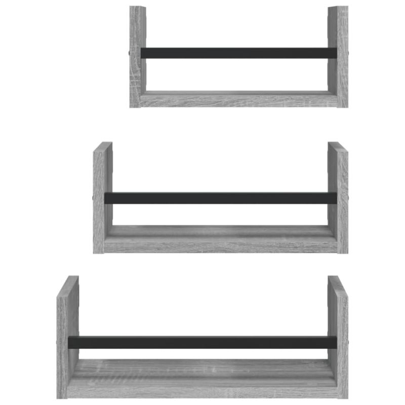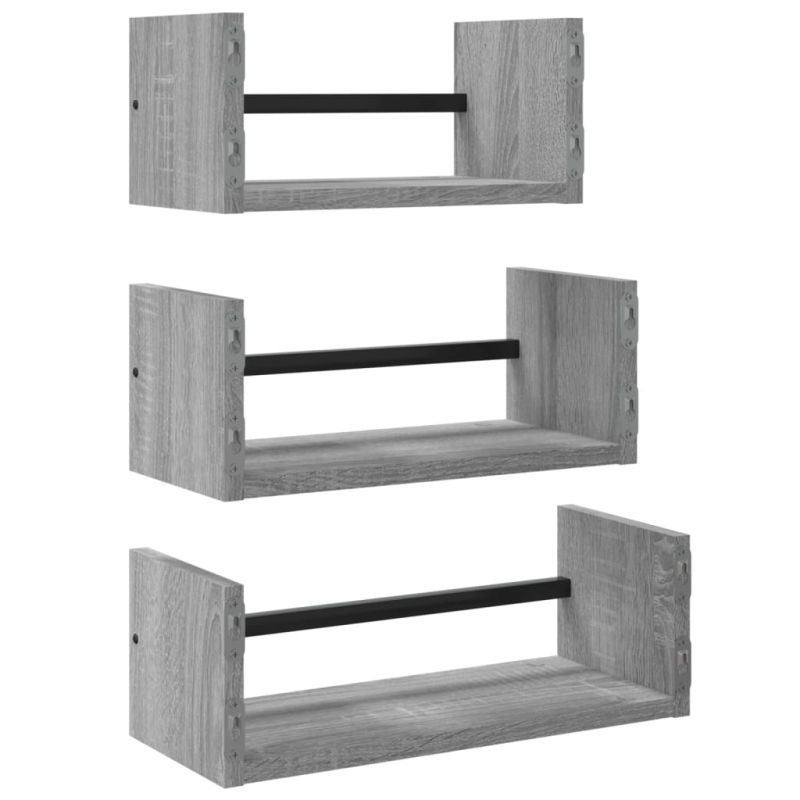 Комплект рафтове за стена 3 части сив сонома инженерно дърво