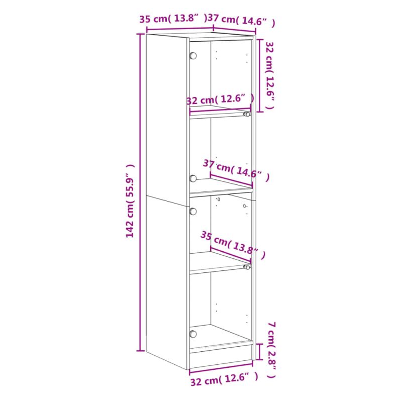Висок шкаф със стъклена врати, опушен дъб, 35x37x142 см