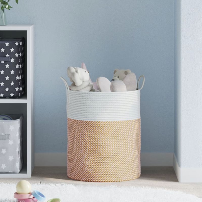 Кош за съхранение, кафяво и бяло, Ø38x46 см, памук