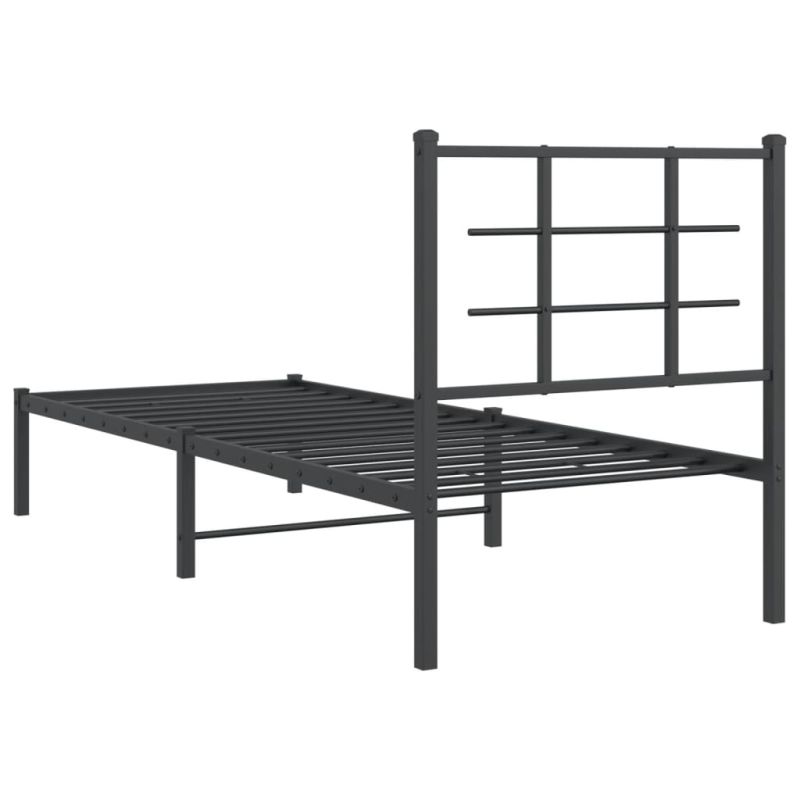 Метална рамка за легло с горна табла, черна, 75x190 см