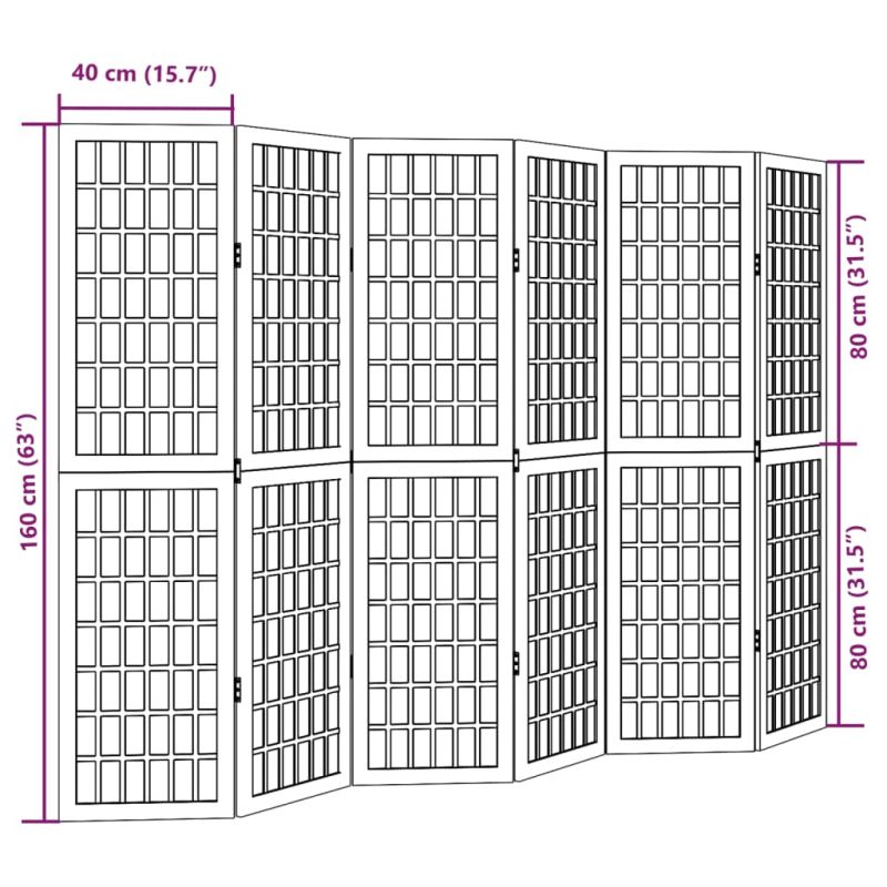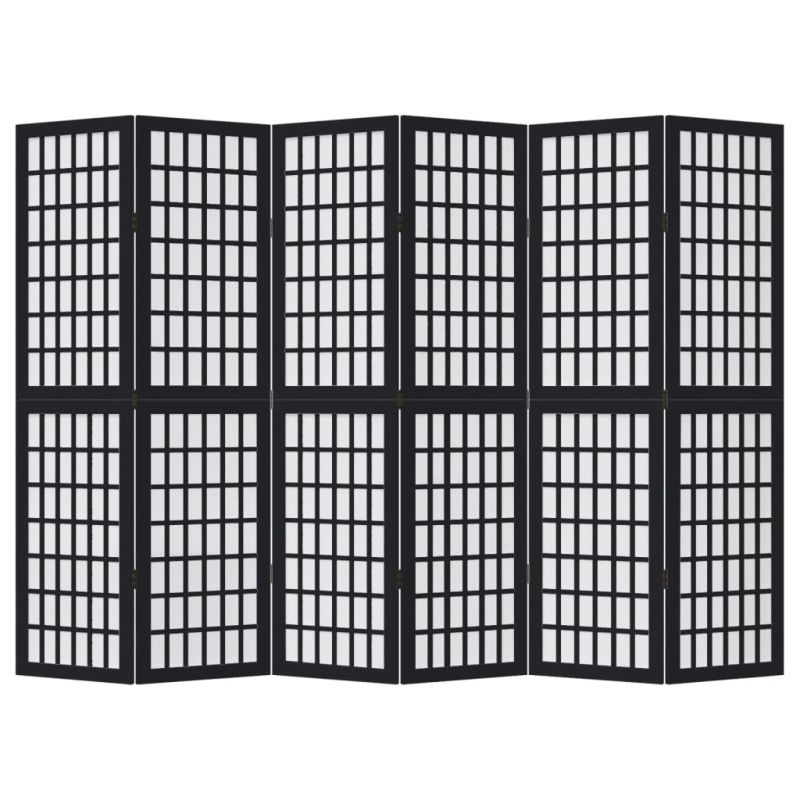 Разделител за стая, 6 панела, черен, дърво пауловния масив