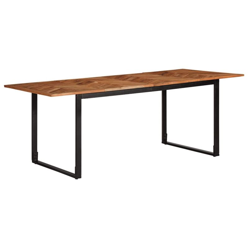 Наслаждавайте се на перфектно време за хранене със семейството или приятелите си на тази дървена трапезна маса всеки ден! Здрав и стабилен материал на рамката: Масивното акациево дърво е известно със своята здравина и издръжливост. Неговите разнообразни цветове и уникални зърнести шарки му придават привлекателен вид. С добра стабилност и устойчивост на атмосферни влияния, тя е идеална за изработка на вътрешни и външни мебели.Здрава рамка: Желязната рамка на кухненската маса придава индустриален стил на вашия интериор, като същевременно осигурява здравина, стабилност и дълготрайност.Практичен плот: Здравият плот на масата за трапезария е идеален за поставяне на ястия, напитки и други декоративни елементи.С крака: Повдигнатите крачета улесняват почистването под масата за хранене, поддържат спретнат вид и осигуряват по-добър въздушен поток около електронното оборудване. Добре е да се знае:Всеки артикул е уникален с вариации в цветове и зърна. Доставката е на случаен принцип, което гарантира ексклузивността и индивидуалността на вашия продукт.
