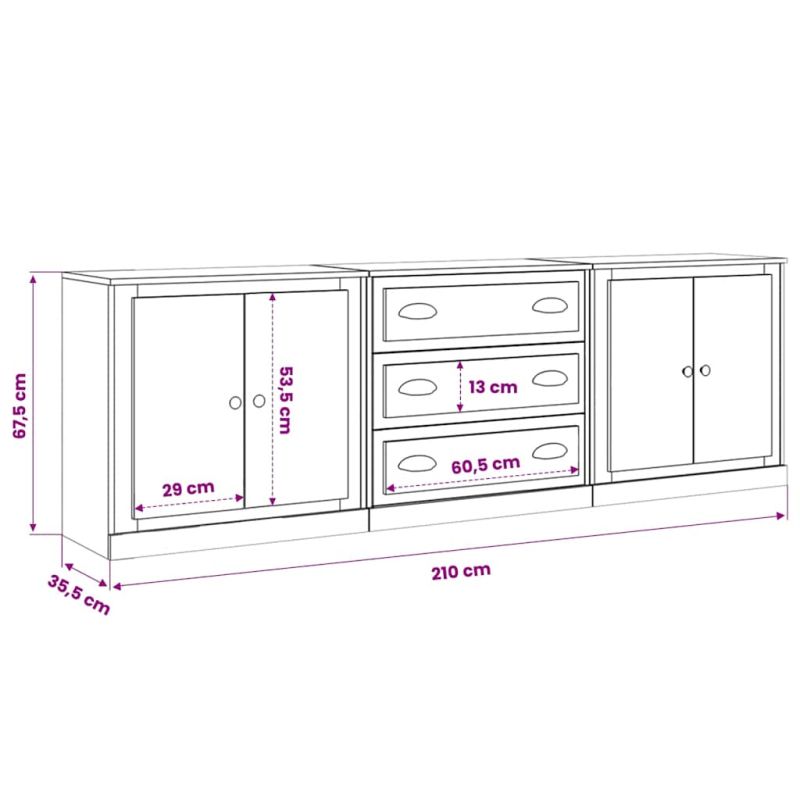 Тези класически сайдборди, отличаващи се с непреходен външен вид, са предназначени да бъдат отлично допълнение към вашия дом. Издържлив материал: Инженерната дървесина е с изключително качество с гладка повърхност и се отличава със здравина, стабилност и устойчивост на влага.Достатъчно място за съхранение: Шкафът предоставя достатъчно място за съхранение, където да държите различни ваши вещи добре организирани и леснодостъпни.Декоративна функция: Върху шкафа за съхранение можете да поставяте любимите си снимки, декорации или цветя, за да разнообразите живота си. Внимание:За да предотвратите преобръщането му, този продукт трябва да се използва с предоставената приставка за закрепване на стената