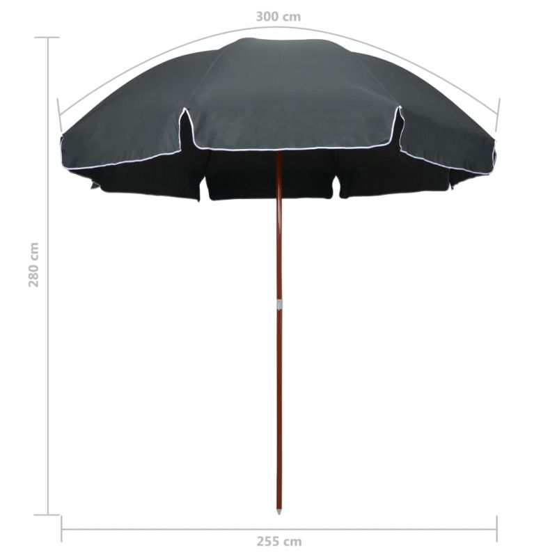 Градински чадър със стоманен прът, 300 см, антрацит
