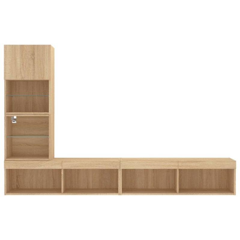 ТВ стенни модули с LED, 4 части, сонома дъб, инженерно дърво