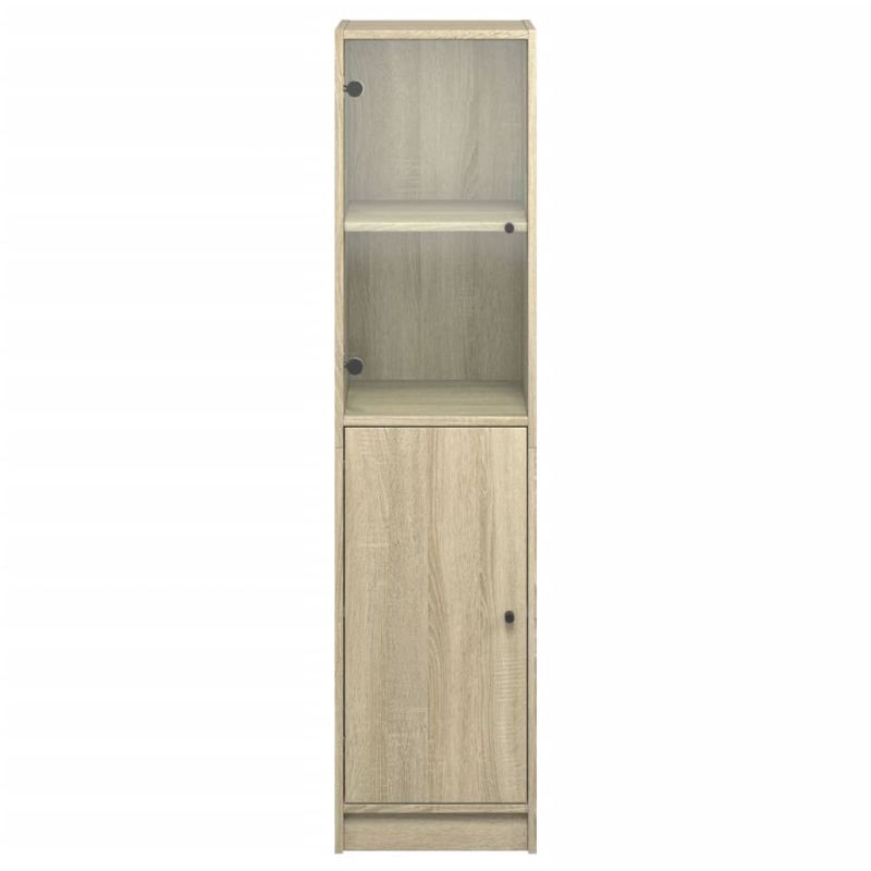 Висок шкаф със стъклена врата, сонома дъб, 35x37x142 см