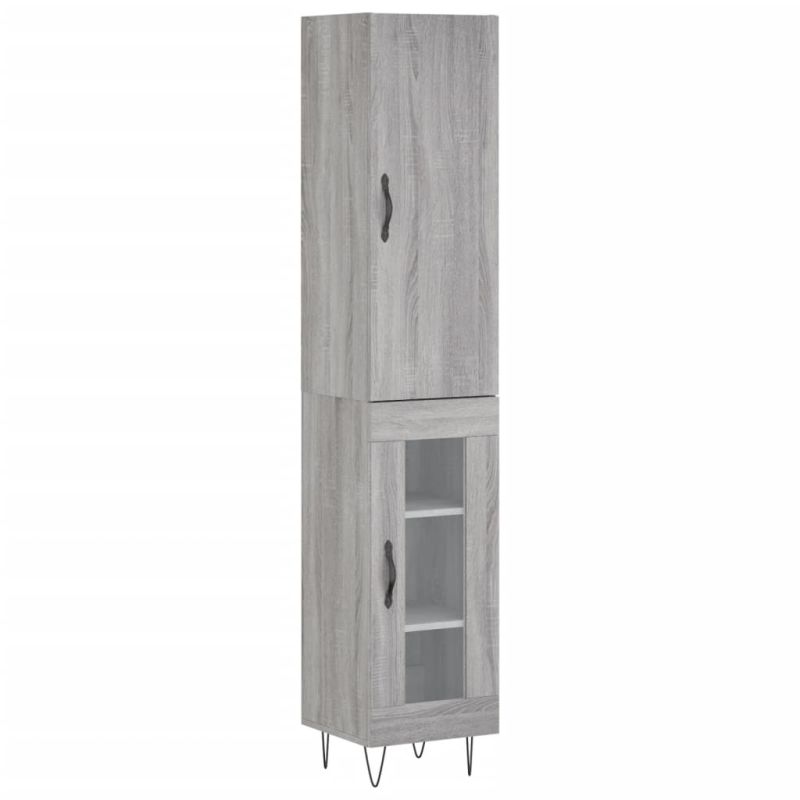 Висок шкаф, сив сонома, 34,5x34x180 см, инженерно дърво