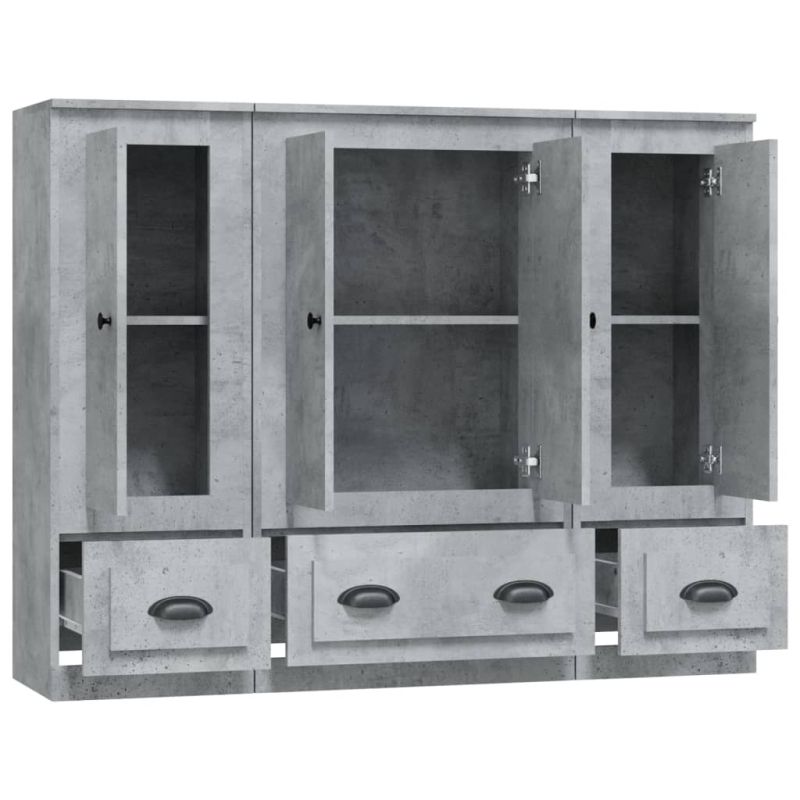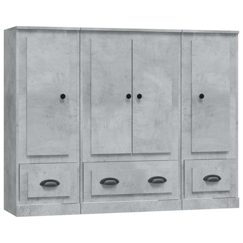 Високи шкафове, 3 бр, бетонно сиви, инженерно дърво