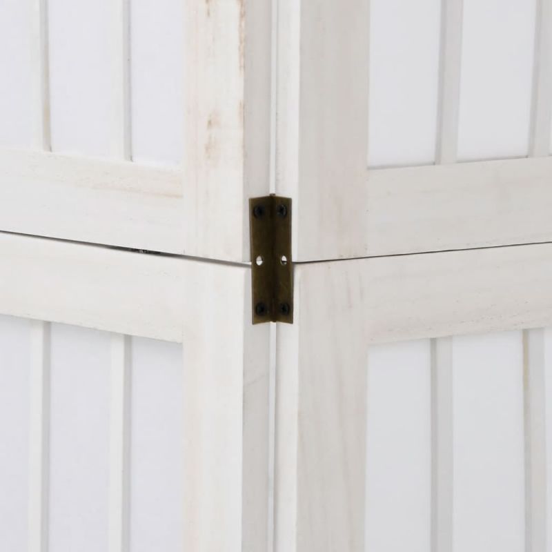 Разделител за стая, 4 панела, бял, дърво пауловния масив