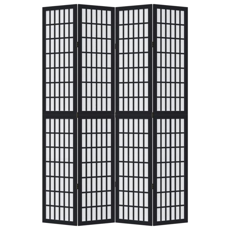 Разделител за стая, 4 панела, черен, дърво пауловния масив