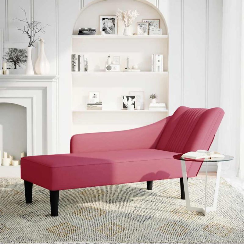 Кушетка с десен подлакътник, виненочервен, кадифе