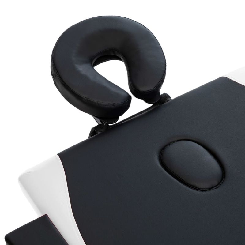 Сгъваема масажна кушетка, 2 зони, дърво, черно и бяло