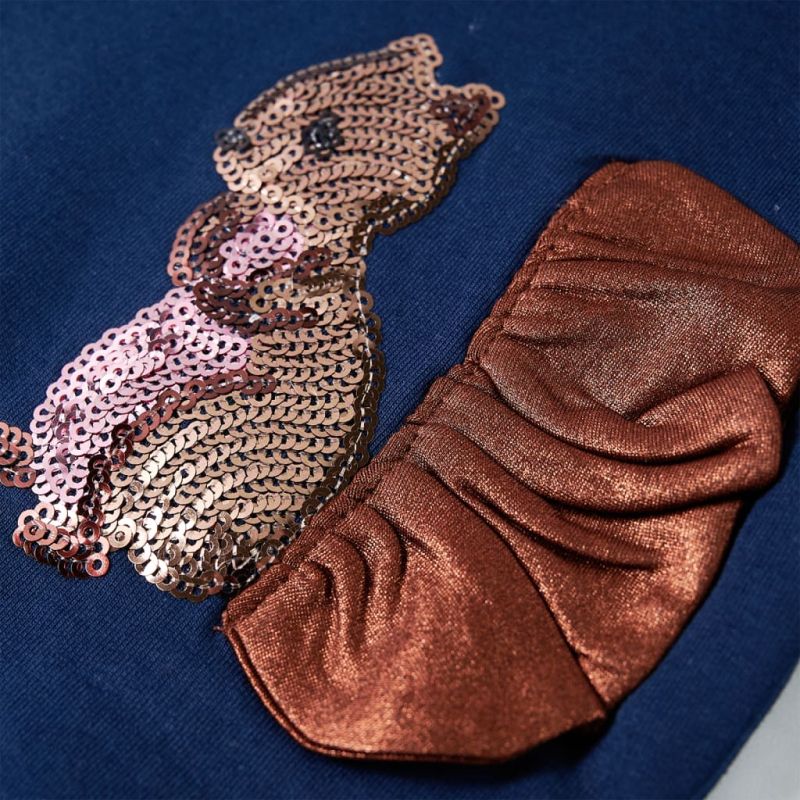Нашата линия за детски дрехи е за достъпни, висококачествени и издръжливи ежедневни облекла за деца на възраст от 1,5 до 10 години. Нашата гама включва якета, пуловери, ризи и много други, с разнообразие от стилове, размери и цветове. Следвайки стандарта за високо качество на пазара, ние използваме висококачествени материали и усъвършенствани производствени техники. Този детски суитшърт е с дълги ръкави, кръгло деколте и оребрени кантове на маншетите, деколтето и долната част. Детското горнище е в красив нейви цвят с 2 катерички с пайети, добавящи допълнително забавление. Пуловерът е изработен от 95% памук и 5% еластан за комфорт и дишане. Меката поларена подплата осигурява допълнителна топлина. Добре е да знаете: Таблицата с размери на снимката предоставя размери за деца на възраст от 1,5 до 10 години, покриващи височина, гърди, талия и ханш. Лесно можете да намерите подходящата за вашето дете.