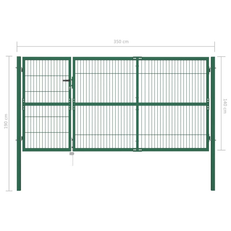 Градинска оградна порта с колони 350x140 см, стомана, зелена