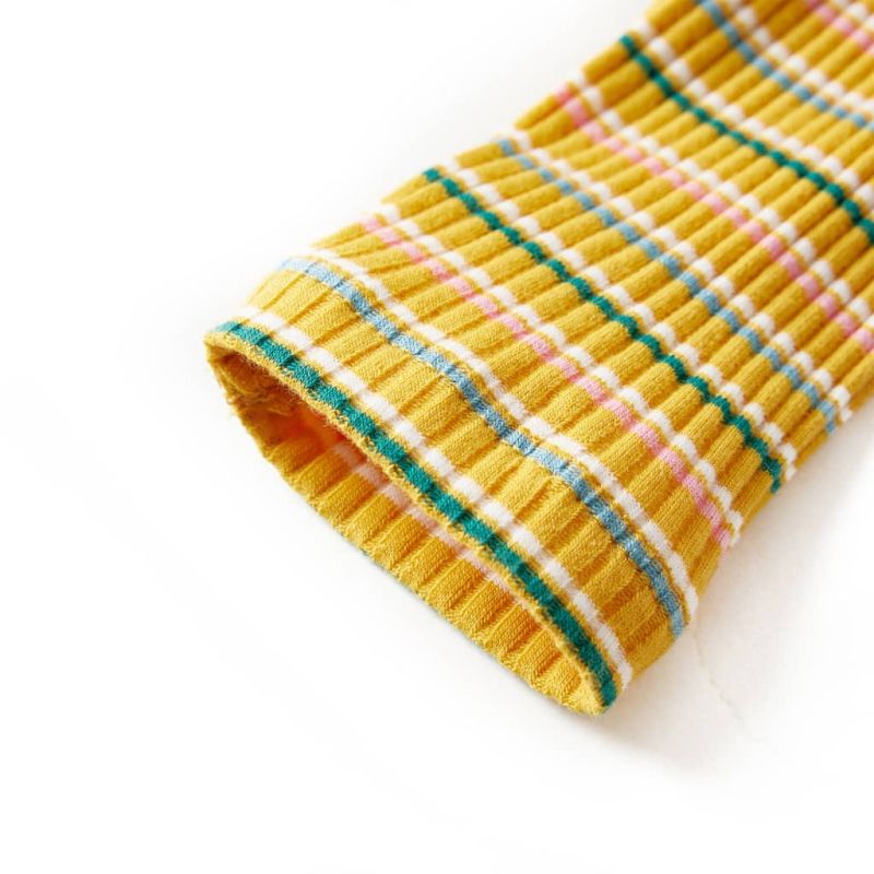 Детска тениска с дълги ръкави, ниска яка, охра, 128