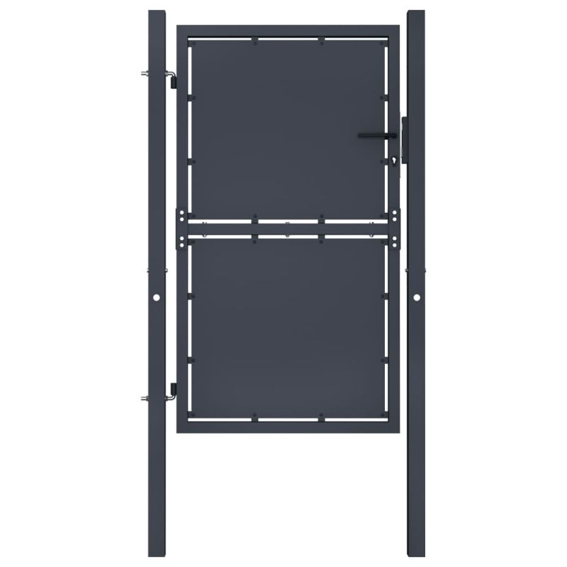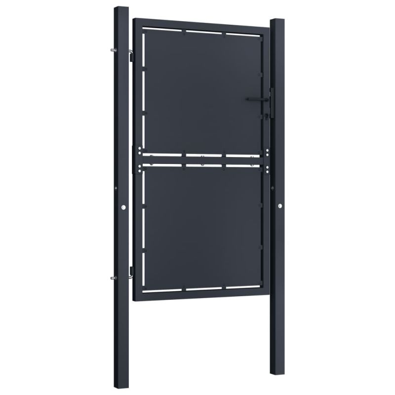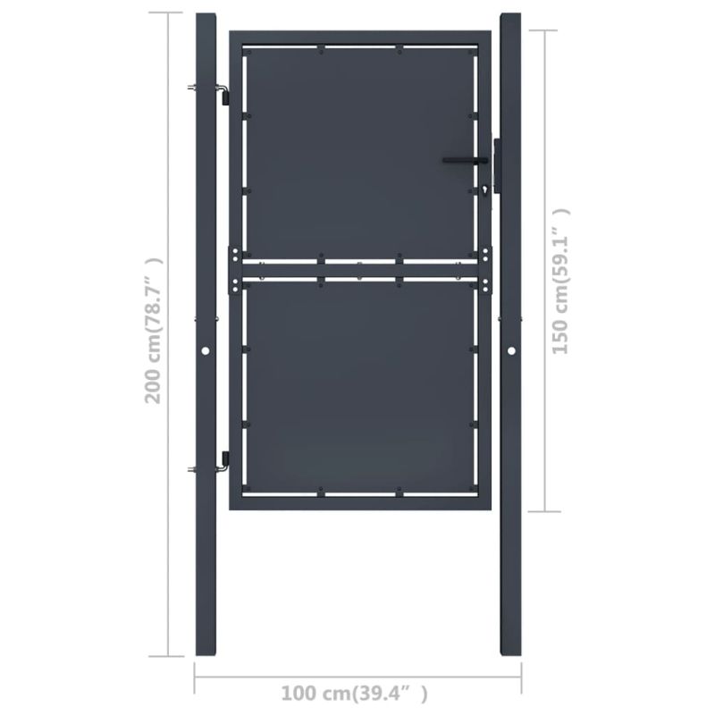 Нашата стоманена оградна врата ще бъде идеален входен портал за оградата около вашата градина или вътрешен двор. Градинската порта е изработена от стомана, което гарантира нейната отлична издръжливост и стабилност. Здравата структура придава на оградната порта допълнителна издържливост. В допълнение, нашата градинска порта ще осигури висока степен на сигурност и неприкосновеност, като същевременно оформи приказен вход към вашия имот. Тази порта се доставя с два здрави стълба с издържливи панти за лесна инсталация. Портата се доставя с включени комплект ключалка и дръжка.