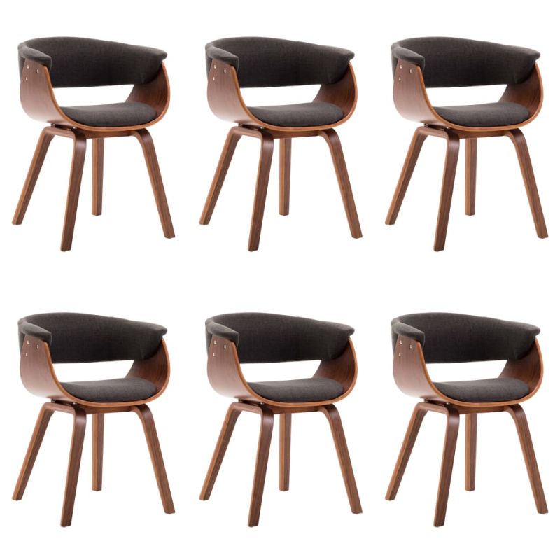 Трапезни столове, 6 бр, сиви, огънато дърво и плат