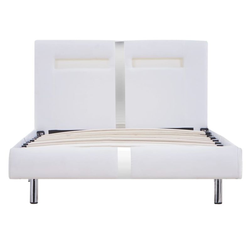 Рамка за легло с LED, бяла, изкуствена кожа, 90x200 cм